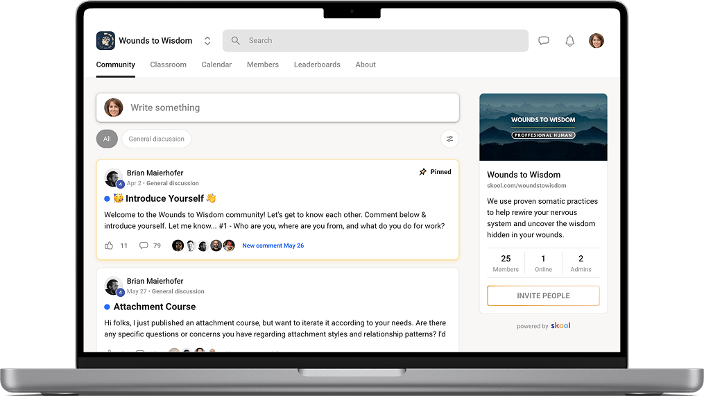 Join a like-minded community where you can continue exploring somatic work in a safe and encouraging space. This includes access to live integration workshops, group coaching sessions, and a growing library of resources.